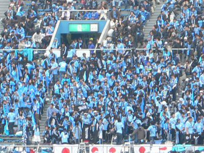 フロンターレブルーに染まったホームゴール裏。
