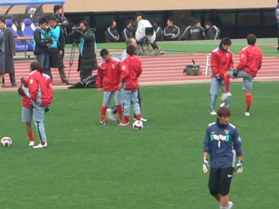 日本代表合宿で練習してる田代・岩政・内田。